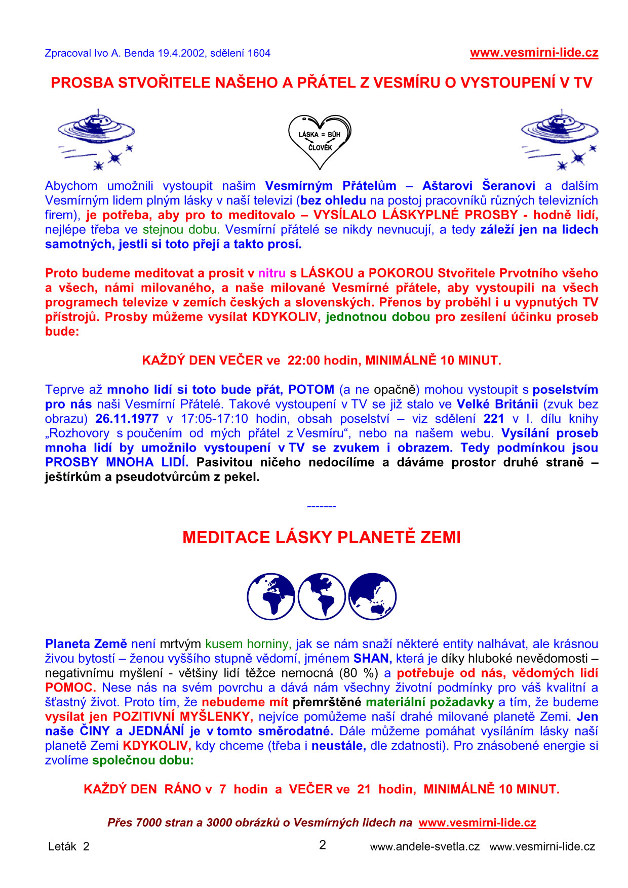 PROSBA  O  VYSTOUPENÍ  V  TV,  MEDITACE  PRO  ZEMI